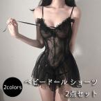 ベビードール ショーツ 2点セット キャミソールワンピース レディース インナー 下着 Tバック レース セクシー 透け感 シースルー かわいい