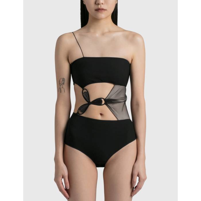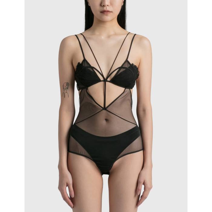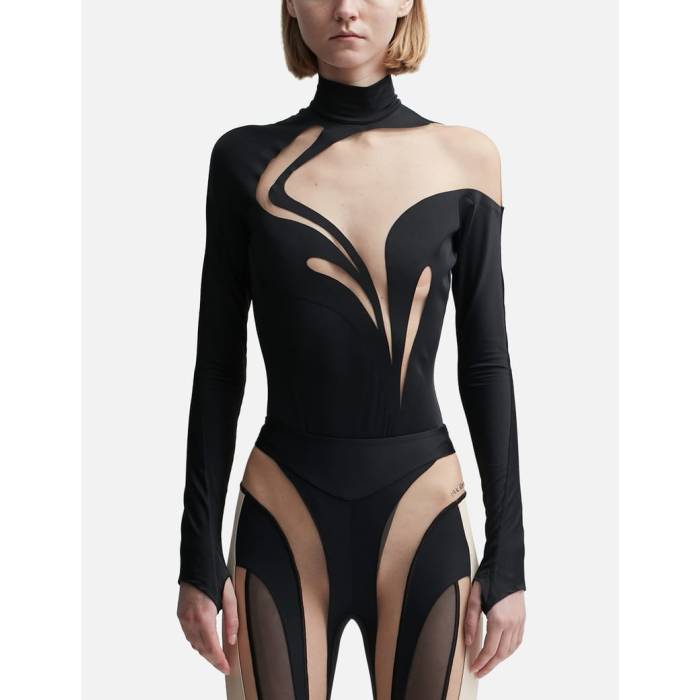 Mugler 【 Swirly Bodysuit Women Black/Nude 】 ボディースーツ レディース 黒色 ブラック