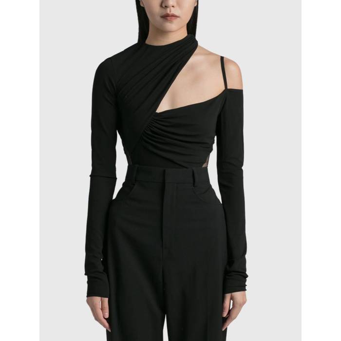 Nensi Dojaka 【 Gathered Asymmetric Long Sleeve Bodysuit Women Black 】 Sleeve スリーブ ボディースーツ レディース 黒色 ブラック