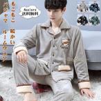 パジャマ メンズ ルームウェア 動物柄 折り襟 長袖 上下セット 前開き 厚手 ポケット付き ゆったり もこもこ 暖かい 防寒 秋冬 きれいめ おしゃれ