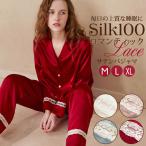 【ポイント5倍】シルク100% パジャマ チュールレース フラワーレース サテンクレープ ナイトウェア ルームウェア エレガント 長袖 4色 M L XL