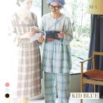 キッドブルー トリプルガーゼオンブレーチェック ワンピース レギンス セット ルームウェア パジャマ 長袖 ネグリジェ KID BLUE