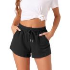 cheibear レディース ソフトパジャマ ボトム ストレッチ ドローストリング ポケット付き スリープウェア ラウンジ ショーツ ブラック M