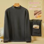 【送料無料】ヒートテック メンズ 上下セット 裏起毛 厚手 肌着 ロンt 長袖 カシミヤタッチ インナー ストレッチ 発熱 アンダーシャツ 保温 防寒 ラウンドネック ボトルネック 春 秋冬 黒 ブラック グレー ネイビー 紺
