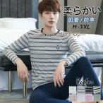 上下セット ヒートインナー 長袖 下着 メンズインナー コットン ランドネック レギンス メンズ 防寒 柔らか 保温 肌着 ストライプ柄