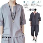甚平 メンズ パジャマ セットアップ 綿 麻 男性 半袖 7分丈 サルエルパンツ 綿麻上下セット 涼しい セットアップ メンズ ワイドパンツ 上下 ル