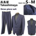 日本製/美品★高島屋/Takashimaya★セットアップ/3ピーススーツ【メンズS-M程度/紺ストライプ】上下/ベスト/three-piece suit◆cBH885
