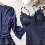 スリップ ランジェリー レディース シルクタッチ ガウン キャミソール ロング丈 2点セット 送料無料