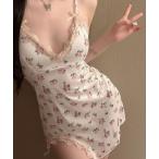 「2点セット」フラワープリント レーススリップランジェリー/ナイトランジェリー セクシー(CZ)