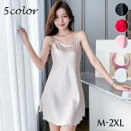 スリップ レディース ランジェリー インナー 肌着 ミニ丈 サテン調 光沢感 大きいサイズあり キャミソールワンピース 透け防止 婦人服 女性用 無地