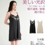 スリップ ランジェリー ロング レース ペチコート 透けない対策 汗染み防止 インナーワンピース 汗取りインナー レディース[M:1/2]大きいサイズ3L-M85cm丈日本製