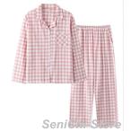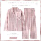 パジャマ 2点セット 春秋 長袖 チェック柄パジャマ 前開き 上下セット シャツパジャマ ランジェリー 襟付き レディース 部屋着