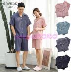 パジャマ カップル 2点セット 夏 半袖 純綿パジャマ 前開き サテン 恋人 上下セット シャツパジャマ ランジェリー 襟付き レディース/メンズ 部屋着[ 単品売り]