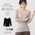 綿日和 綿100% 深あき インナー 長袖 抗菌防臭 襟ぐり広め 保温 ロングスリーブ レディース 女性 春 夏 秋 冬 コットン 肌着