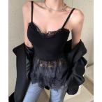 インナーシャツ 肌着 デザインレース×サテン サイドスリット キャミソールランジェリー レディース レディース