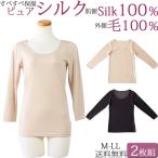 シルク100% 下着 シルク 長袖 レディース ロング 8分袖 ウール100% インナー 長袖tシャツ セット2枚 M-LL 大きいサイズ 絹 あったかインナー 汗取りインナー