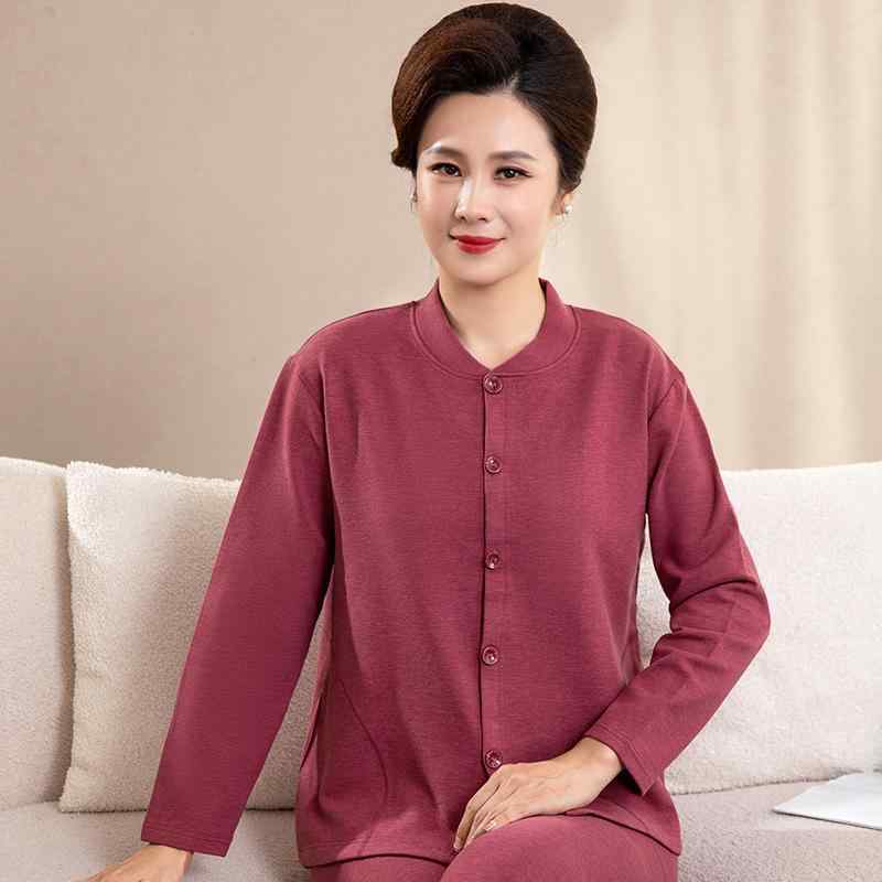 肌着 レディース インナーシャツ 長袖 長ズボン 上下セット 無縫製 薄手 保温性 女性用 肌着セット ナイロン ラウンドネック ブラック ベージュ ブラウン グリーン レッド