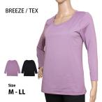 インナーシャツ レディース BREEZETEX 防風 8分袖 丸首 防寒 肌着 カットソー Tシャツ アンダーウェア 保温 透湿 M L LL