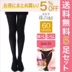 タイツ 黒 黒タイツ 肌色 レディース おなかゆったり気分 ノンウエストゴム 60デニール タイツ 5足組 717q1255 M-L ブラック フクスケ fukuske 福助 公式