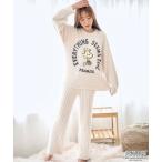 パジャマ ルームウェア アルファベット刺繍付きふわもこルームウエア レディース