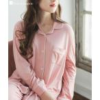 パジャマ ルームウェア 「温度調整」ワンポイントロゴ刺繍前開きパジャマ レディース