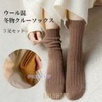クルーソックス レディース 靴下 3足セット ウールソックス 暖かい 厚手 冬ソックス 3足入 シンプル 厚手ソックス ウール混 ウィンター 女性
