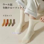 ソックス 冬 レディース 靴下 4足セット 厚手 ウール混 暖かい クルーソックス 冬ソックス 厚手靴下 滑り止め 女性 ウールソックス 4足 レトロ