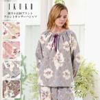 パジャマ レディース 【イクコ IKUKO】 綾ネル花柄プリント フロントギャザーパジャマ 日本製 綿100% フランネル 両面起毛 寝巻き 長袖 長パンツ 洗濯可能