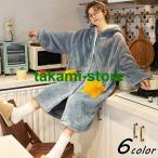 ナイトガウン メンズ ルームウェア もこもこ ペアパジャマ レディース 冬 長袖 寝巻き カップル 前開き 暖かい グレー ネイビー パープル レッド オレンジ