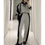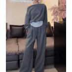 パジャマ ルームウェア 2点セットアップレイヤード風オフショルダートップス&ロングパンツ レディース