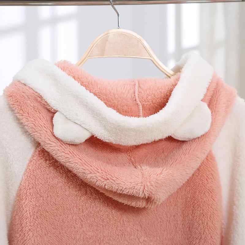 パジャマ レディース 秋冬 長袖 ルームウェア 上下セット 厚手 フランネル 暖かい かわいい うさぎ ピンク系(x1000)