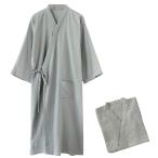 [YAKIDA] パジャマ メンズ バスローブ 夏 長袖 寝巻き ルームウェア 春 浴衣 和風 綿100% 前開き 吸汗 介護 入院 寝間 部屋着 お