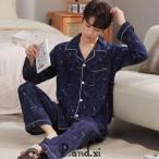 2点セット 上下セット 春夏 長袖 前開き 涼しい バスローブ パジャマ メンズ メンズパジャマ ルームウエア 部屋着 寝間着