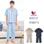 ワコール Wacoal 睡眠科学 シャツパジャマ 上下セット メンズ 5分袖 半袖 前開き 2重ガーゼ 綿100%