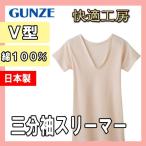 グンゼ GUNZE 快適工房 Vネック 三分袖 スリーマー レディース インナー シャツ 綿100%