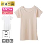 グンゼ 快適工房 三分袖 丸首 スリーマー 綿100% 抗菌防臭 M/L | 脇縫いなし レース 無地 レディース 綿 半袖 肌着 インナー KQ5051 GUNZE