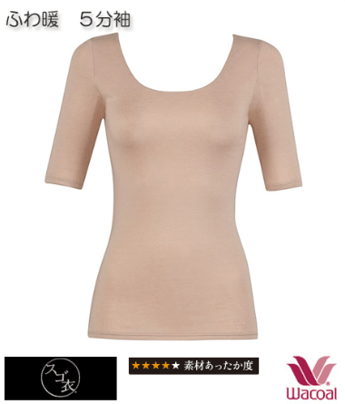 セール20%OFFワコール インナーニットトップ(ふんわり、あったか)5分袖【CLC582】【日本製】【1点までネコポス可】