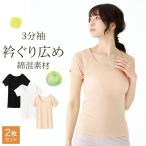 2枚セット 肌着 襟ぐり広め 3分袖 半袖 インナー レディース 春夏 綿混 衿ぐり 抗菌防臭 吸汗速乾 肌着 婦人 女性