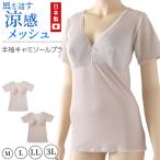 メッシュ ブラキャミ 半袖 インナー レディース 日本製 M〜3L 下着 ノンワイヤーブラ 夏 涼しい カップ付き 大きいサイズ LL 3L シニア 50代 60代