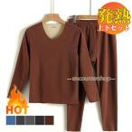 インナー メンズ インナーセット Vネック 発熱インナー 上下セット あったか 長袖 発熱 裏起毛 無地 肌着 ロングパンツ 保温 防寒インナー