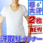 2枚セット 送料無料 綿100% 汗取り インナー サーフ シャツ V首 メンズ 春夏 脇汗 素肌ドライ パッド付き 汗染み 防止 汗 対策 シャツ 吸汗速乾 肌着 男性