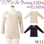 シルク100% 下着 シルク 長袖 レディース ロング 8分袖 ウール100% シルク インナー レディース 長袖 tシャツ [M:1/1]M L LL 大きいサイズ 絹 あったかインナー レディース ロング丈 冬 暖かい 汗取りインナー 背中 冷えとり 肌着 母の日 プレゼント silk