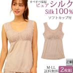 シルク100% ブラキャミソール スリップ ランジェリー ブラトップ シルク100% 下着 タンクトップ カップ付き レディース セット 2枚[M:1/1] 大きいサイズ LL L M