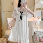 ネグリジェ 半袖 絹 サテン 刺繍レース 裾スリップ 大人可愛い ルームウェア 寝間着 パジャマ 汗取り 吸汗 速乾 温活 防臭 保湿 通気快適 敏感肌用 可愛い