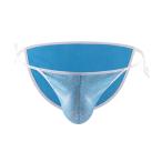 ブリーフ 紐パン ショーツ 下着 メンズ ボクサーブリーフ キラキラ 伸縮性よい 勝負下着 おしゃれ フリーサイズ スカイブルー