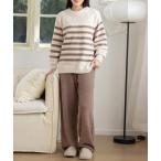 パジャマ ルームウェア レディース 長袖もこもこボーダートップス+腹巻付きロングパンツルームウェア 上下2点セット レディース