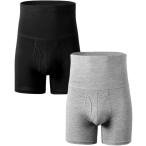 腹巻付き ボクサー 2枚セット メンズ 前開き ハイウエスト インナー パンツ アンダーウェア 下着 男性 保温(デザインC, 4L)
