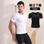 補正下着 メンズ 男性用 インナー 半袖 ラウンドネック 丸首 引き締め ウエスト お腹まわり 上半身 無地 上半身 トレーニング ジム