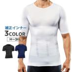補正下着 引き締めインナー 半袖 クルーネック メンズ 男性 インナー ウエスト お腹まわり ぽっこりお腹 大きいサイズ 無地 上半身 トレーニング