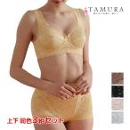 補正下着 色違い 上下5色セット ノンワイヤーブラジャー&ショーツ 上下セット 総レース 多機能 日本製 ブラ 50代 セット タムラ TAMURA